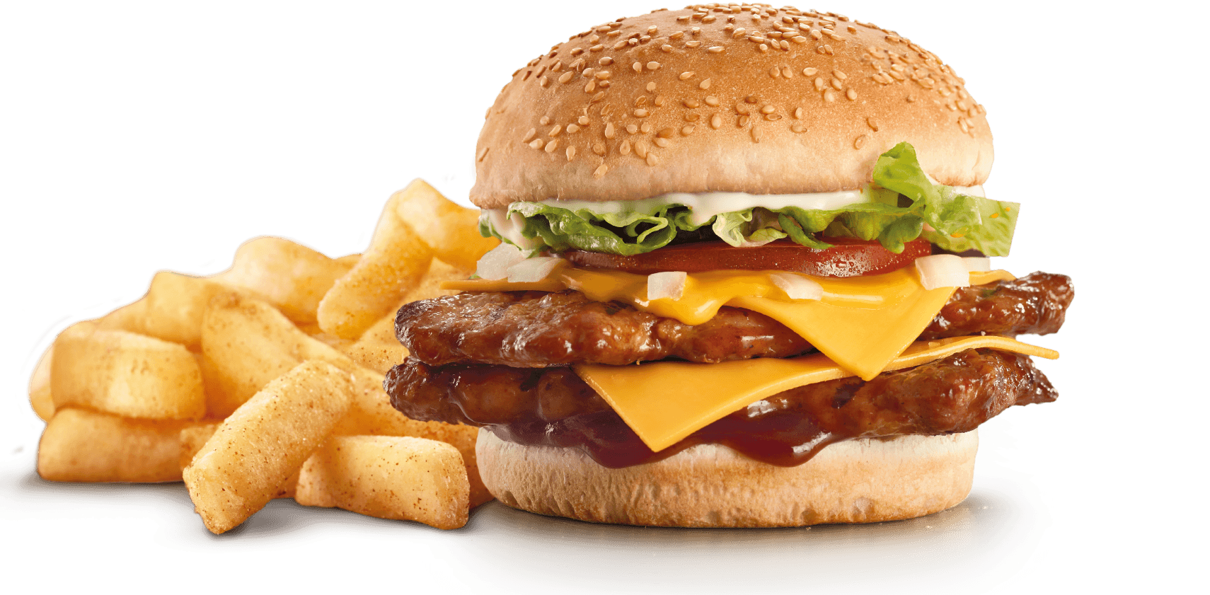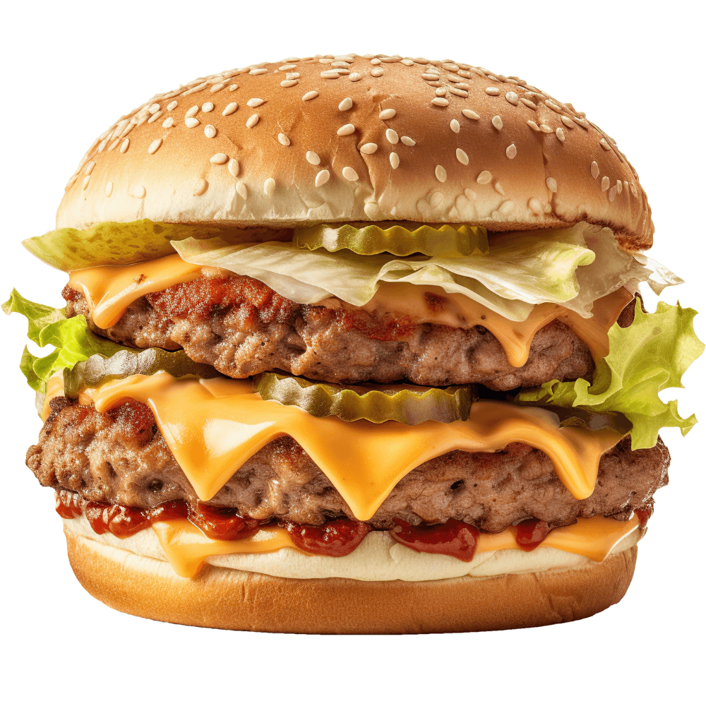 Indulge in smoky goodness with a flame-grilled beef patty, topped with crispy bacon, melted cheddar cheese, caramelized onions, and a smattering of tangy BBQ sauce.