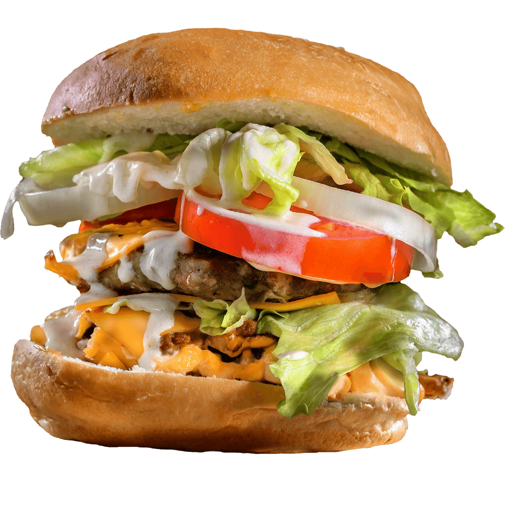 Ignite your taste buds with a fiery kick! This burger features a succulent beef patty, fiery jalapeños, pepper jack cheese, and a zesty chipotle mayo sauce , and all the classic fixings on a toasted bun.